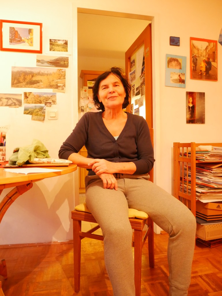 She doesn’t bake a lot, and when she does tries to reduce the sugar content and use organic ingredients. Her Mürbeteig contains ground almonds and walnuts, as well as a little coconut sugar. She emphasised the importance of using local, fresh ingredients, and preferring quality to variety. Her kitchen was full of sacks of apples and potatoes, her fridge filled with homemade spreads. She doesn’t agree with some modern received wisdom, preferring butter to margarine and preparing for me a doorstep slice of bread spread with her own homemade Schmalz and red onions while we waited for the biscuits to cook.